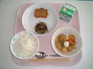 はじめは、児童の体位向上のため栄養をとることが一番大切でした。現在は、「教育の一環」として位置付けら